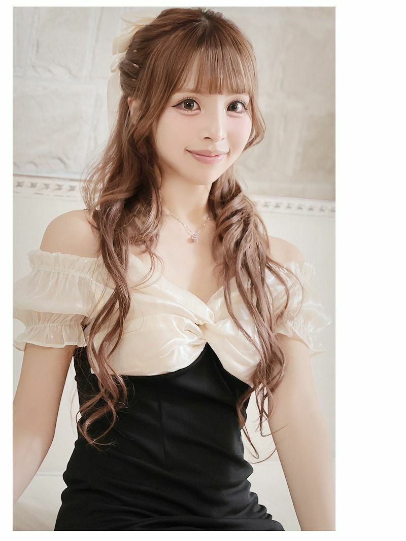 ※一部予約販売※甘さと色気のバランスが絶妙!バイカラーオフショルダーミニワンピース あいさ 着用 キャバドレス【RyuyuChick】