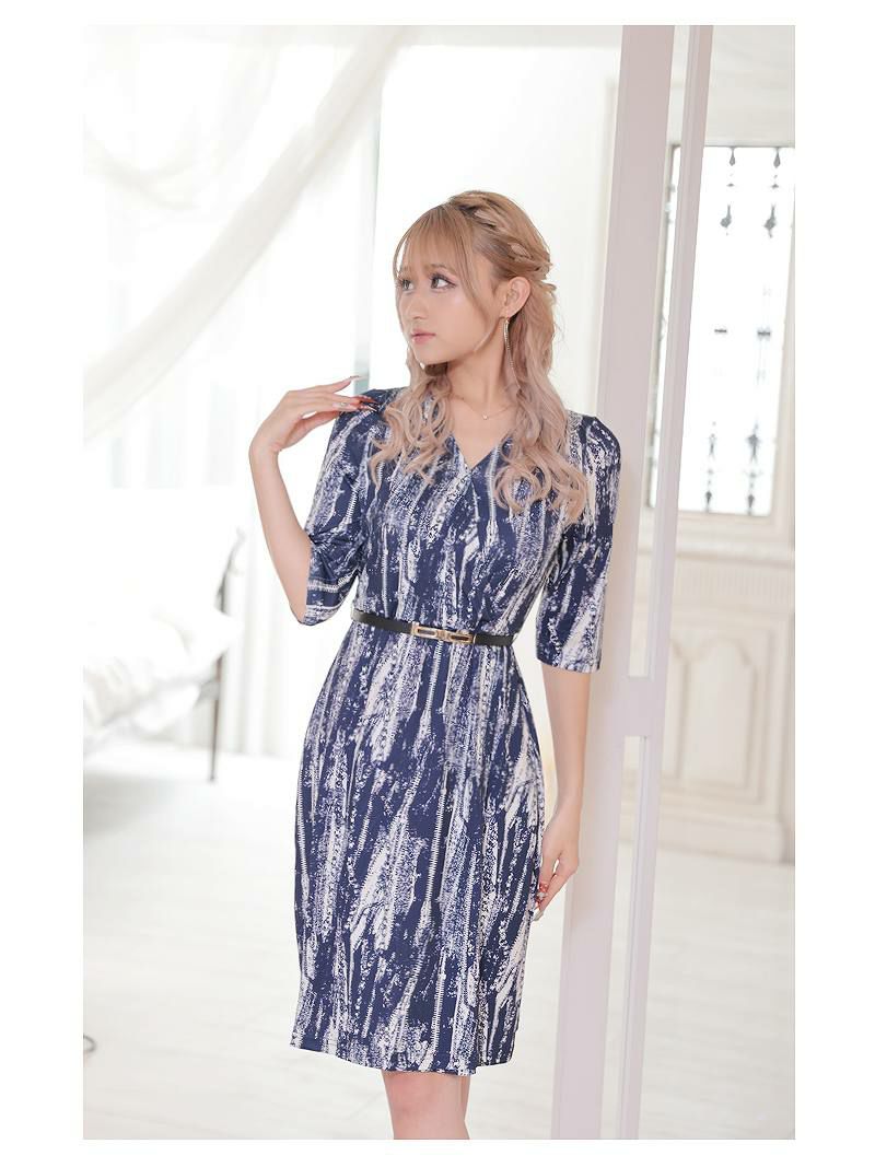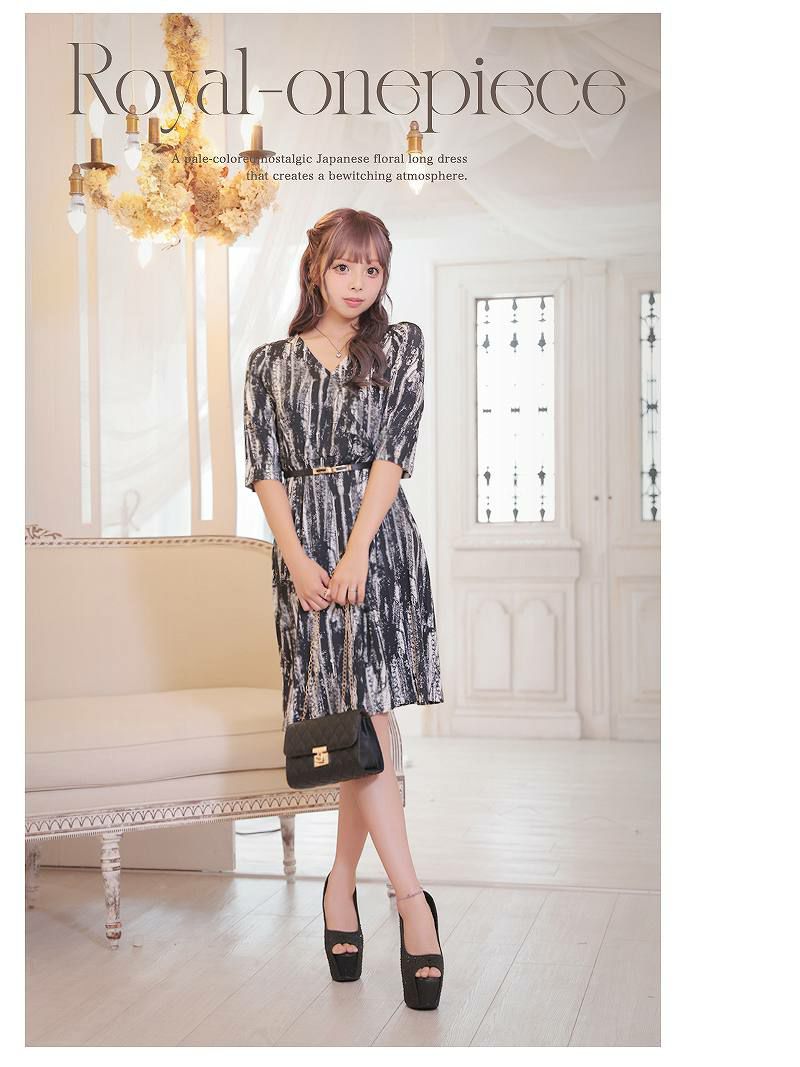 クールな柄プリントが魅力的なキャバドレスで、大人っぽい洗練された印象に。