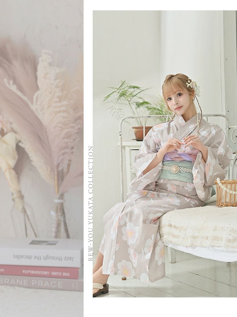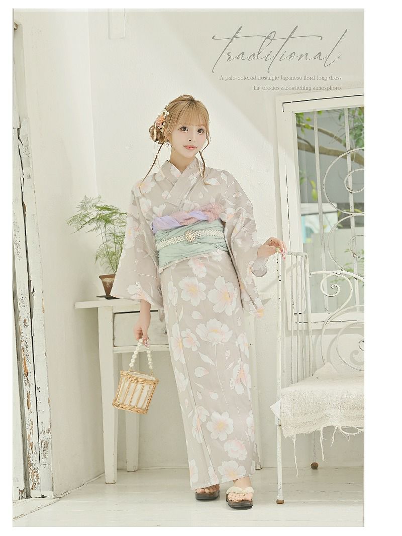 くすみベージュが今っぽくて、映えるレディース浴衣です。