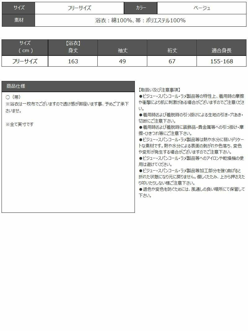 浴衣:綿100%、帯:ポリエステル100%
