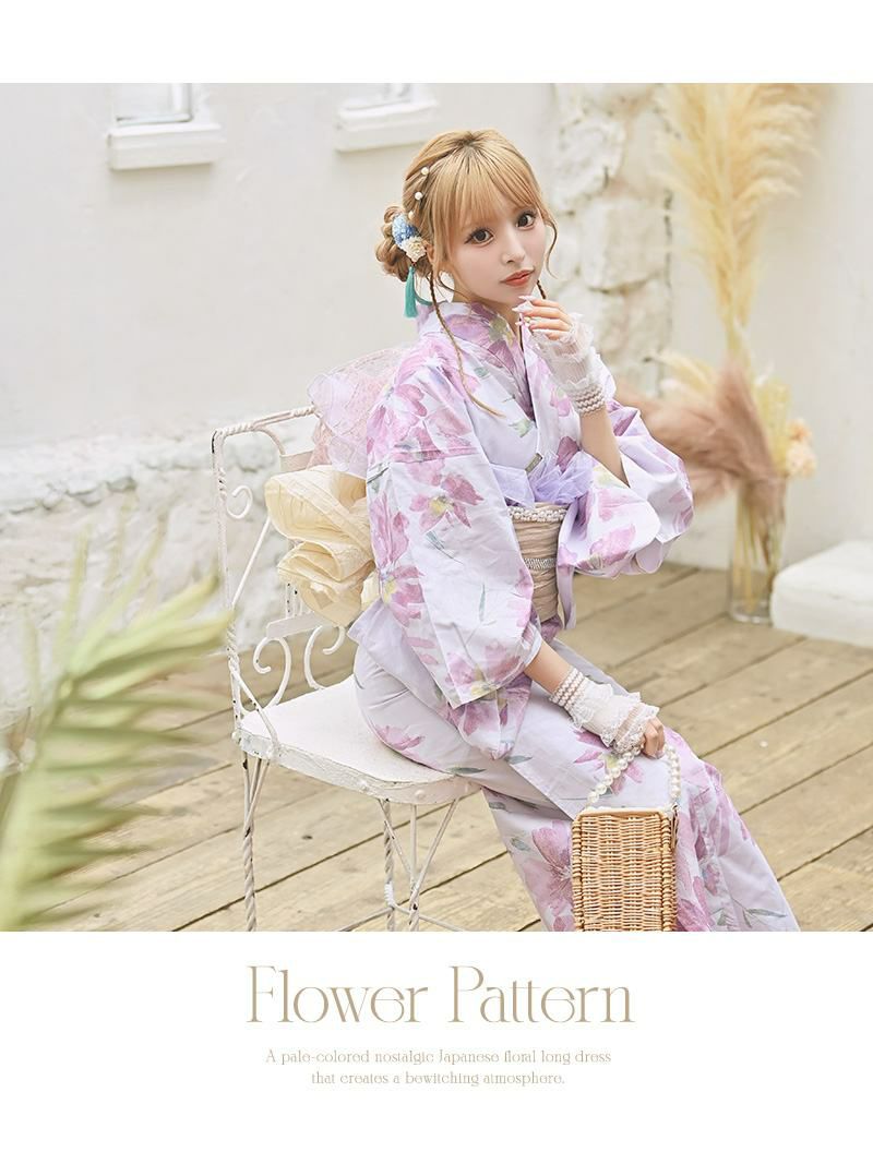 大人可愛い雰囲気がSNS映えもできる2点セット浴衣です。