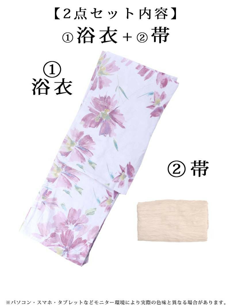 浴衣:綿100%、帯:ポリエステル100%