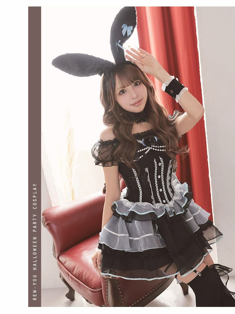 かわいさ際立つゴスロリ風バニー♪ コスプレ ドーリーバニーガールデザインギャルコスプレ あいさ 着用 ハロウィンコスプレ【Ryuyu】(フリーサイズ)(ブラック×ブルー)