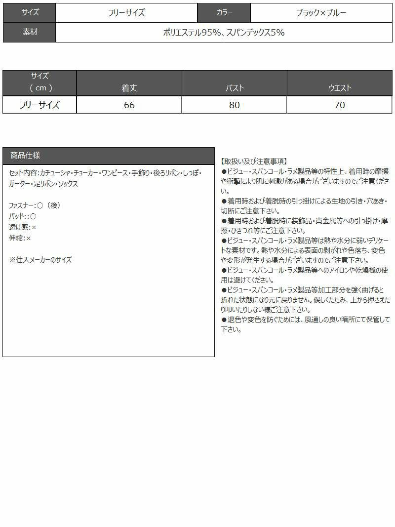 セット内容:カチューシャ・チョーカー・ワンピース・手飾り・後ろリボン・しっぽ・ガーター・足リボン・ソックス