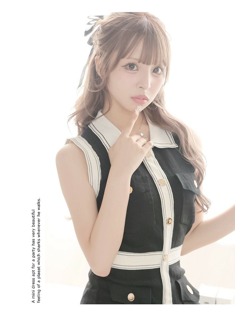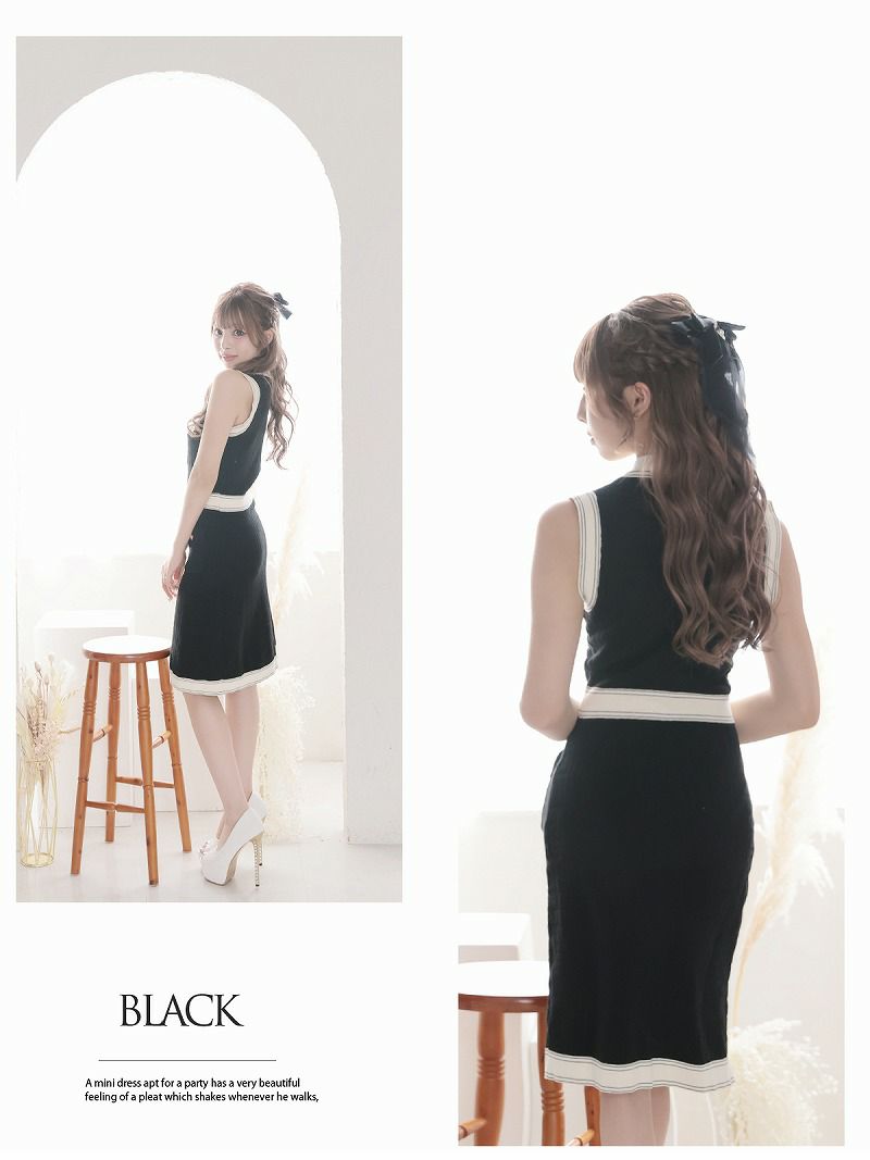 大人可愛い韓国風モノトーンキャバワンピース あいさ 着用 キャバドレス【RyuyuChick】