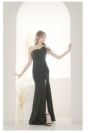片方の肩をすっきり魅せるワンショルデザインが色っぽいタイトロングドレス。