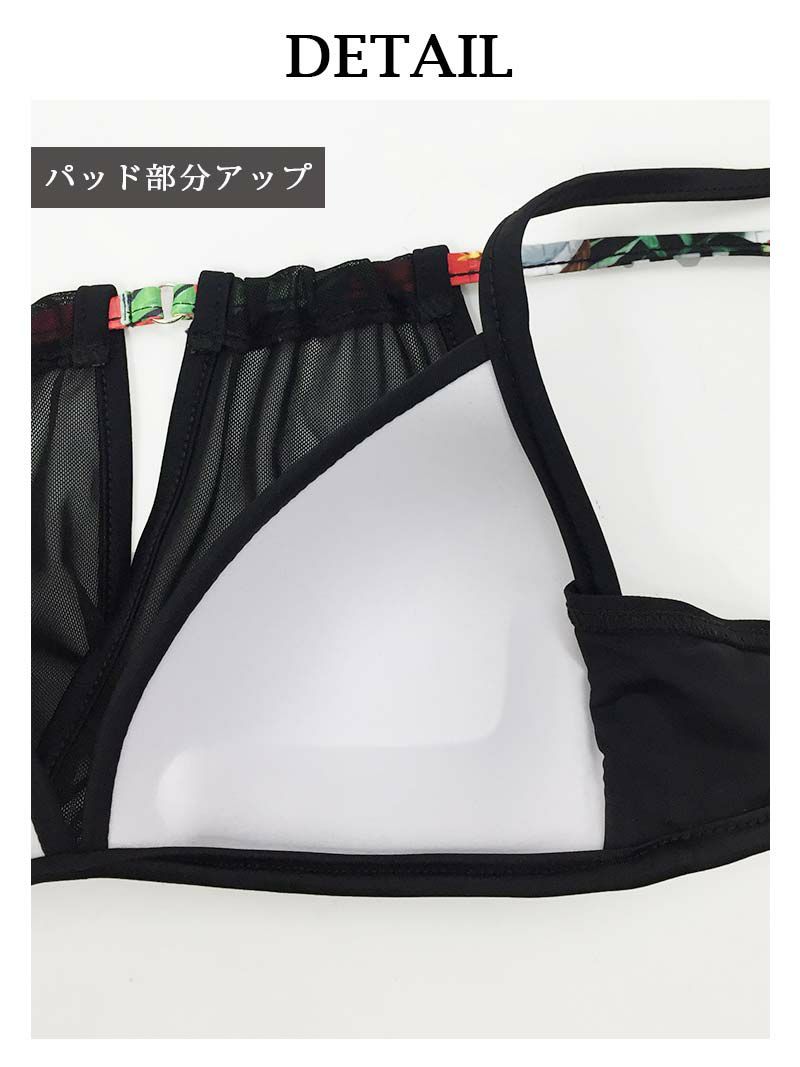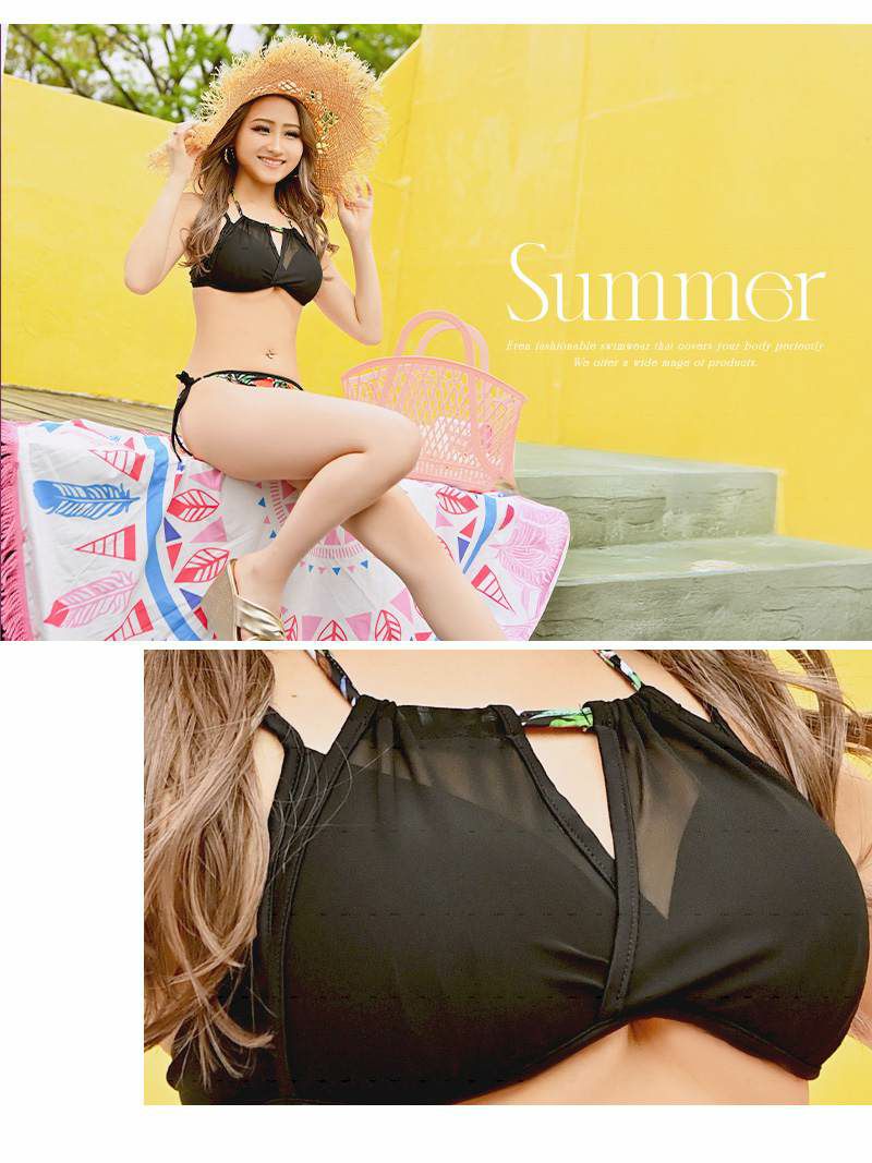 バストシースルーが程よい肌見せ! スーパーSALE¥3980→¥3582! 水着 フルーツボタニカル柄シースルーホルターネックビキニ あいみん着用【Ryuyu】レディース水着(M)(ブラック)