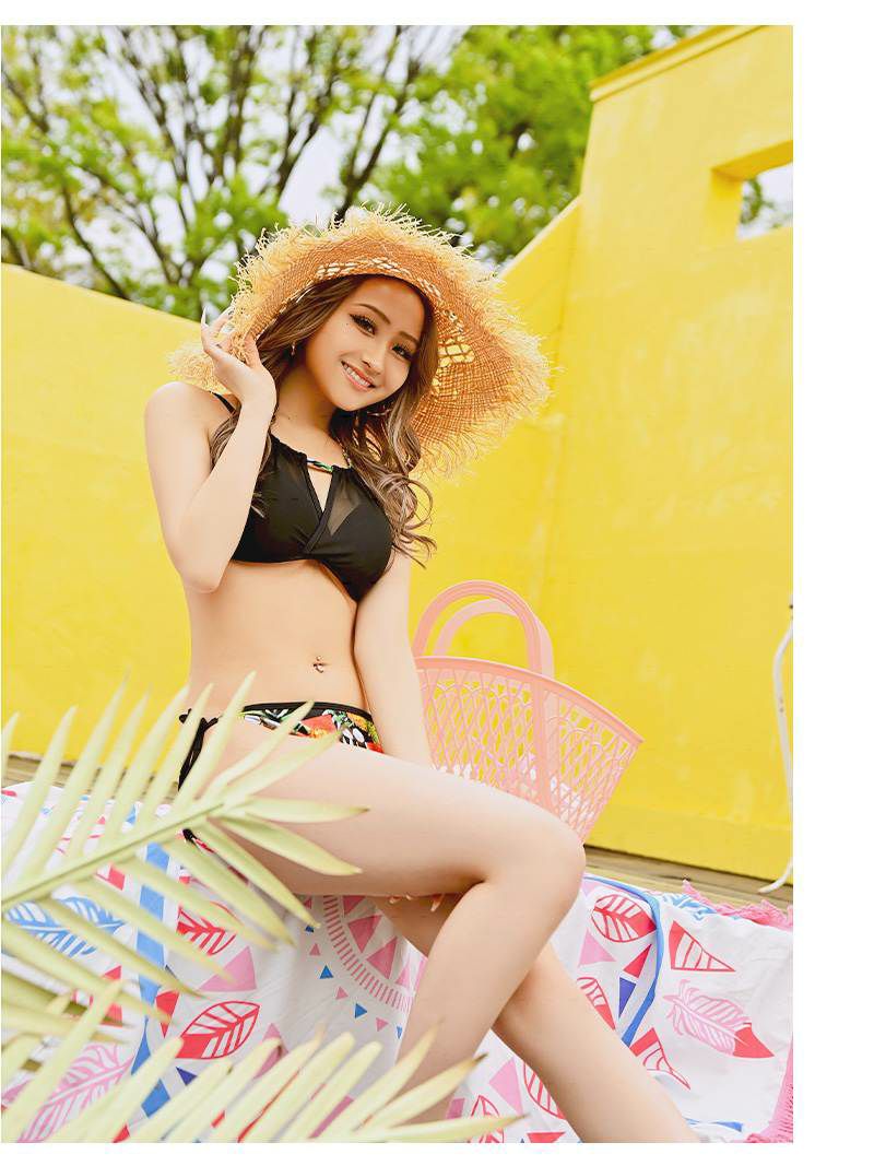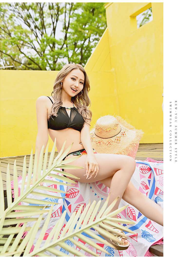 6. スーパーSALE¥3980→¥3582! 水着 フルーツボタニカル柄シースルーホルターネックビキニ あいみん着用【Ryuyu】レディース水着(M)(ブラック)