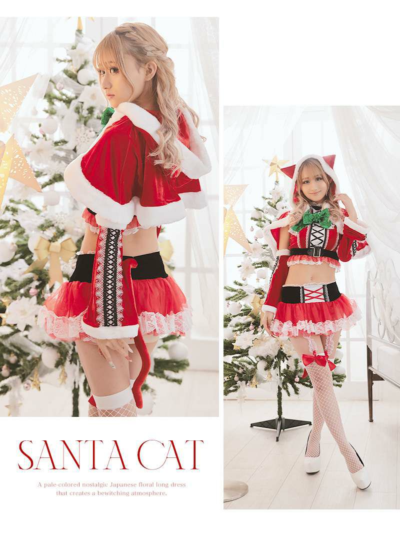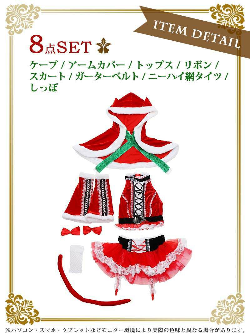 サンタコスプレ ケープ付きセットアップキャットサンタコスプレ8点セット あいみん 着用 サンタコスプレ【Ryuyu】