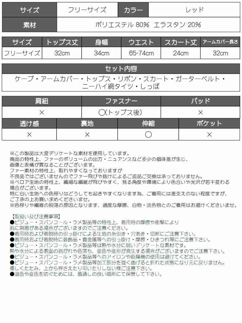 セット内容:ケープ・トップス・アームカバー・スカート・ガーターベルト・リボン・ニーハイ網タイツ・しっぽ