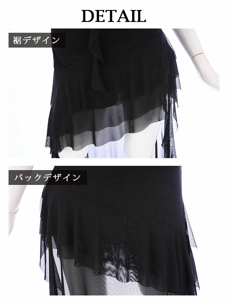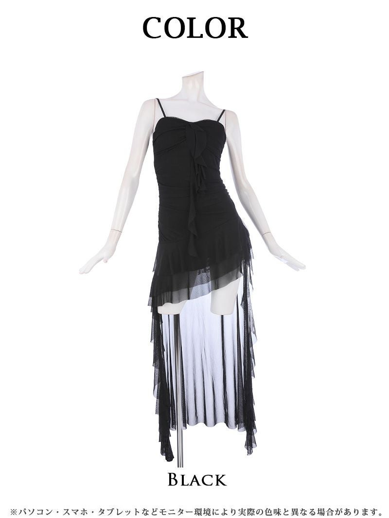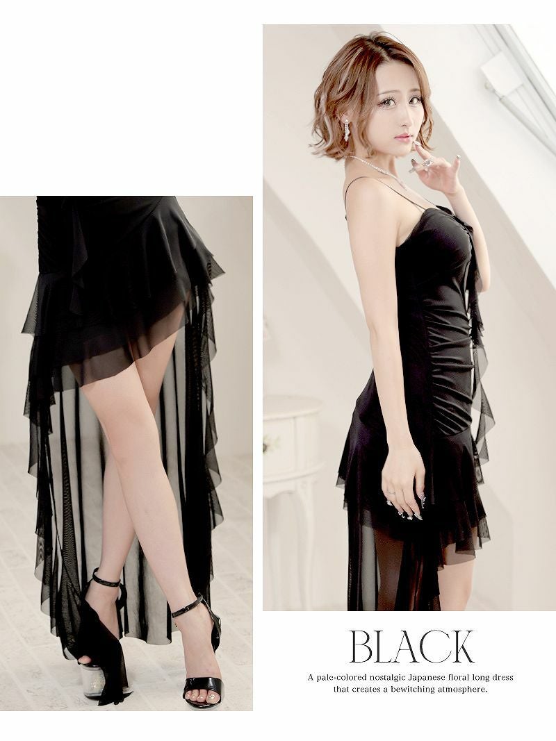 ミニとロングのドッキング♪ 美ライン前ミニロングドレス キャバドレス【RyuyuChick】(M)(ブラック)