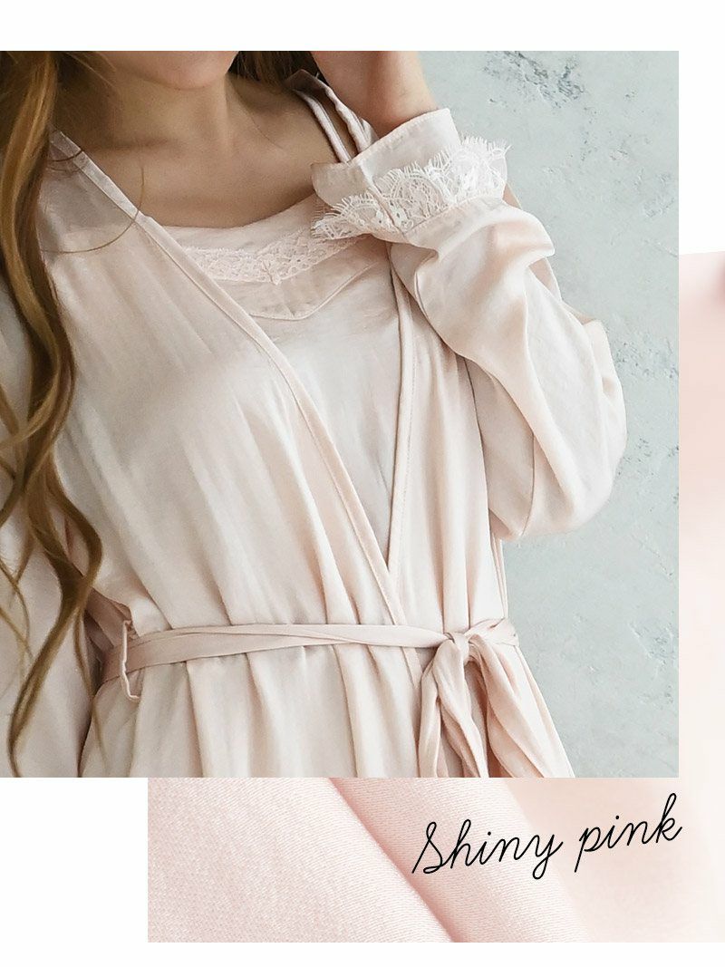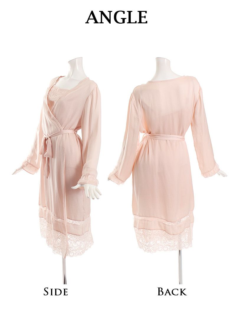 訳ありアウトレットのピンクレースガウンルームウェアセット!