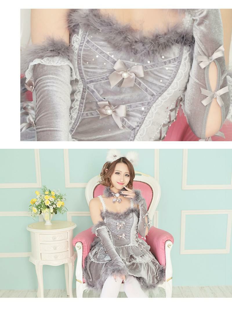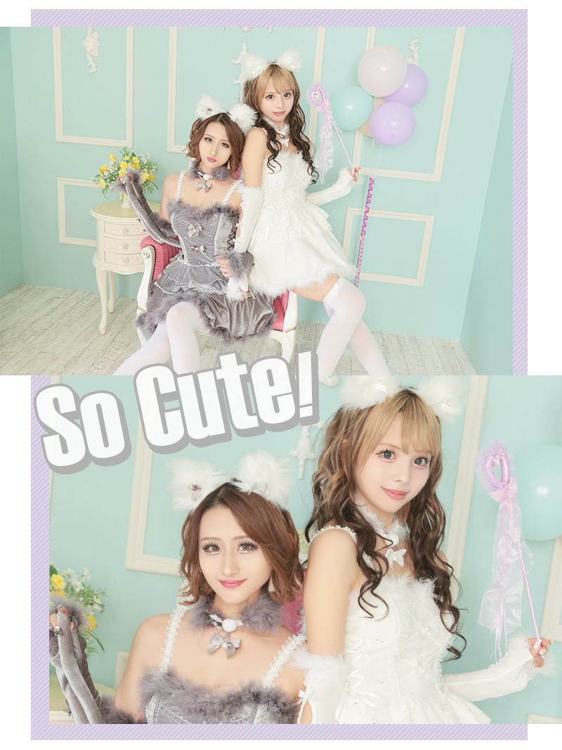 キュートな猫コスプレで夢中にさせる! コスプレ ファーキャットガーリーハロウィンコスプレ あいさ あいみん 着用 レディースコスプレ7点セット【Ryuyu/リューユ】(フリーサイズ)(ホワイト/グレー)