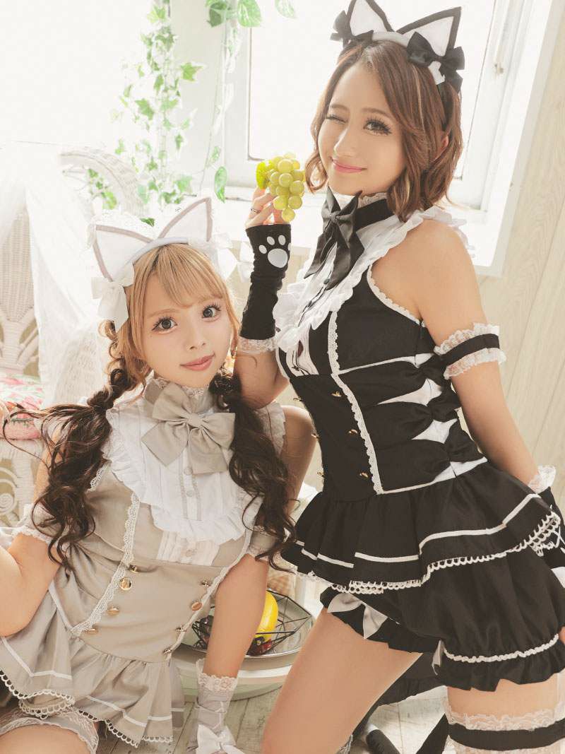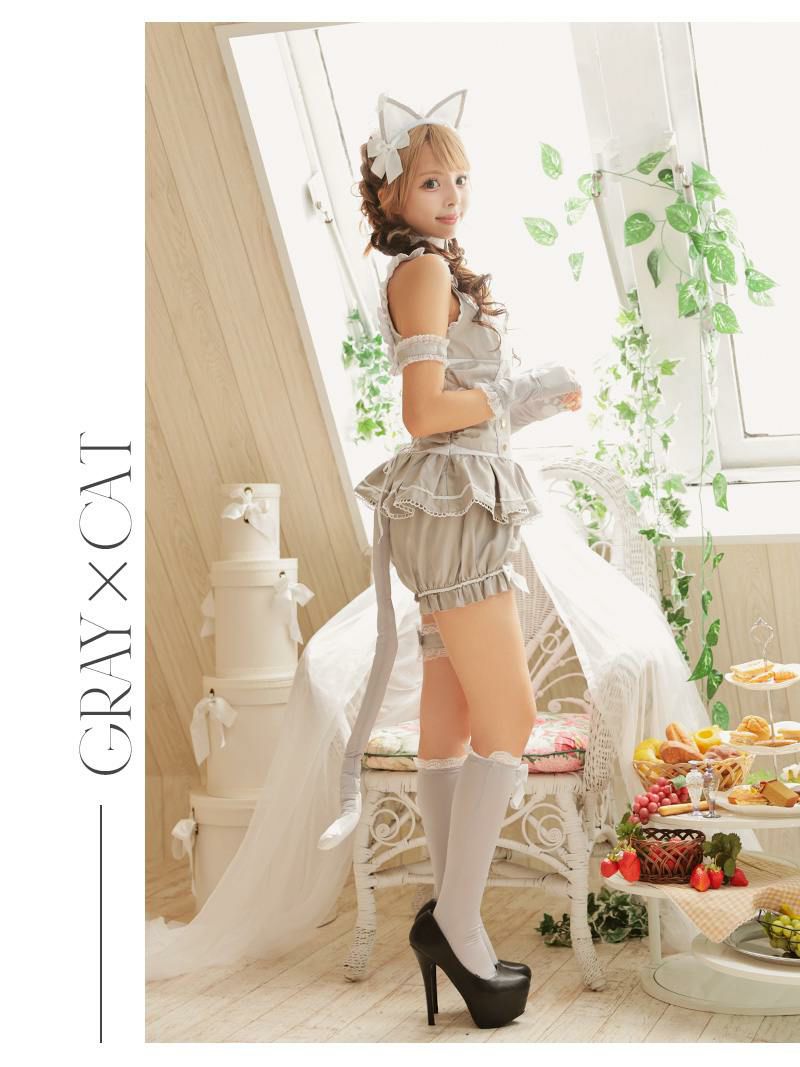クラシカルに大人可愛く着こなせる! コスプレ キャットメイドロリータコスプレ あいさ あいみん 着用 ハロウィンコスプレ9点セット【Ryuyu】(S/M)(グレー/ブラック)