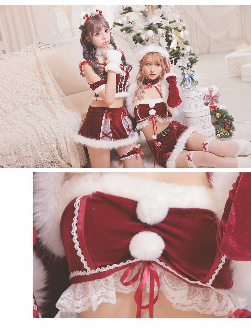 欲張りサンタで誰よりも可愛く目立っちゃおう♪ サンタコスプレ ビスチェ風もこもこアニマルギャルサンタコスプレ12点セット あいみん 着用 レディースサンタコスプレ【Ryuyu】(フリーサイズ)(レッド)