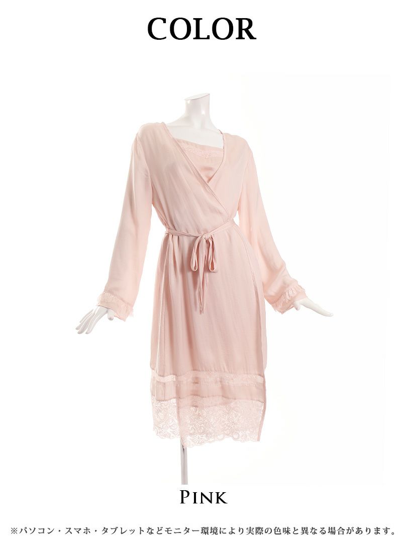 訳あり激かわルームウェア 【訳ありアウトレット】ピンクのレースガウンルームウェアセット【Rwear】(M)(ピンク)