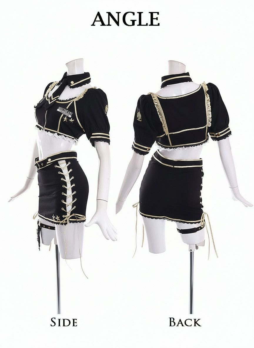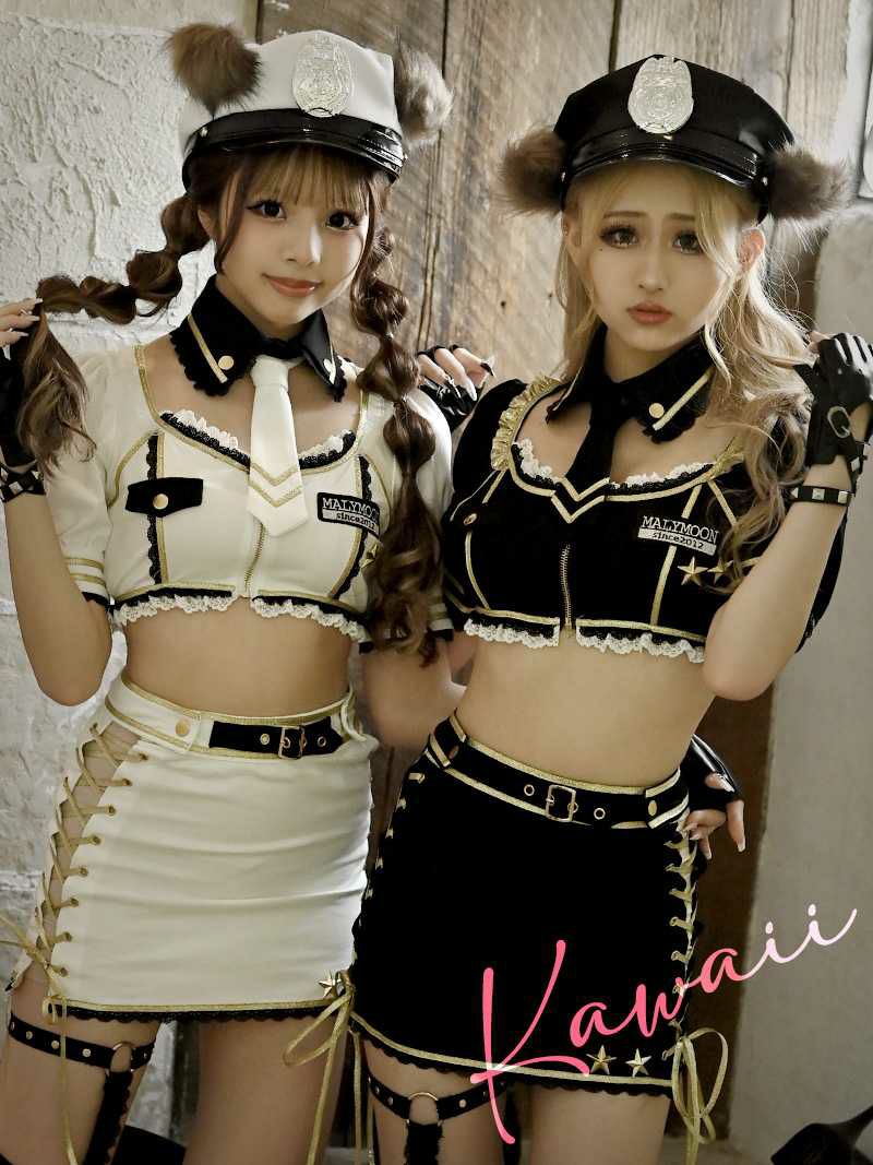 訳あり超cuteコスプレをお得に♪ 【訳ありアウトレット】アニマルポリスのへそ出しめっかわ激安ギャルコスプレセット あいさ あいみん 着用【Ryuyu】(フリーサイズ)(ブラック)