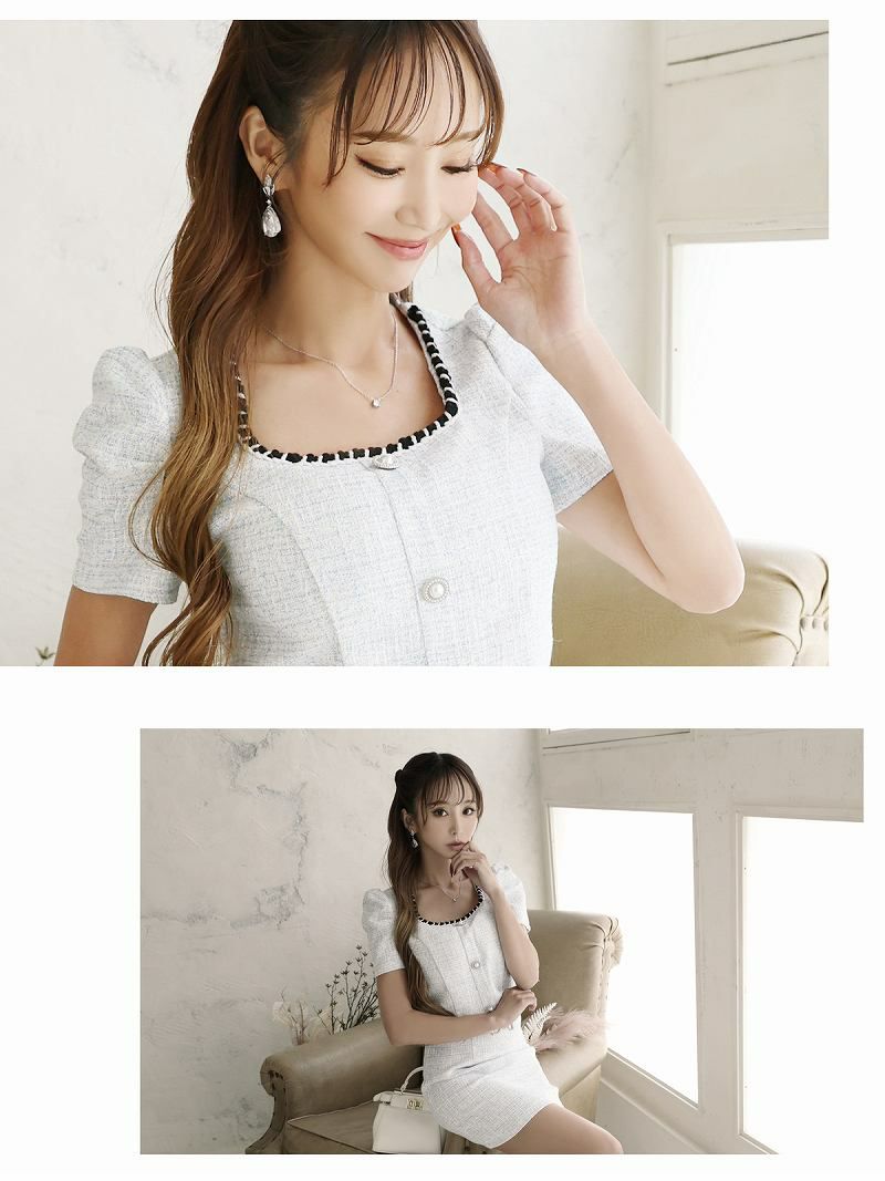 ツイードセット上品大人かわいいセットアップキャバクラドレス【Belsia】