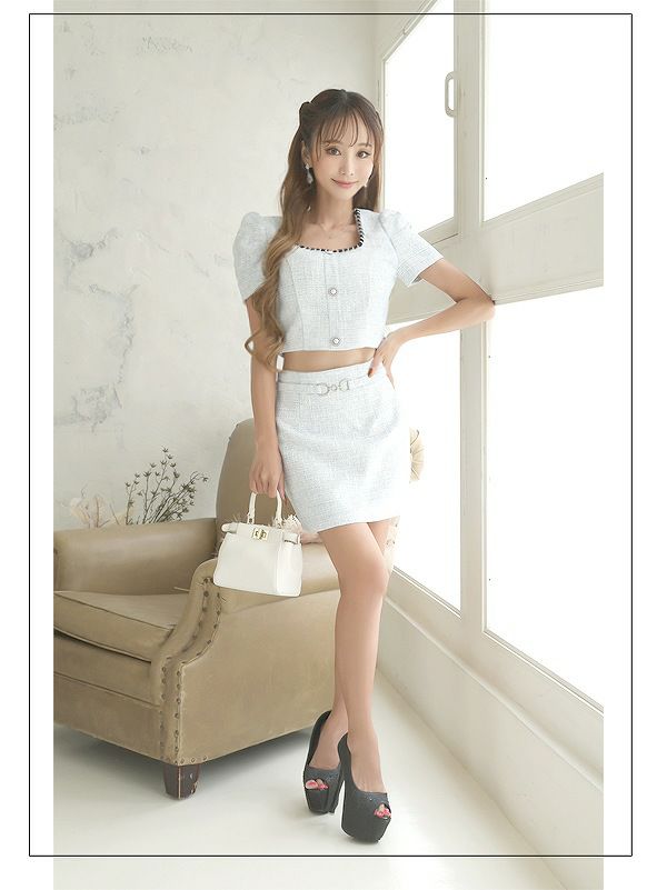 大人可愛い上下セット ツイードセット上品大人かわいいセットアップキャバクラドレス【Belsia】(S/M/L)(ブラック/ブルー)