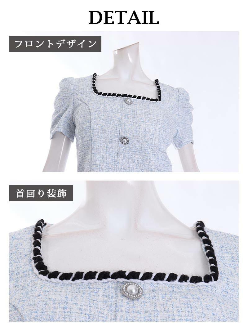 7. ツイードセット上品大人かわいいセットアップキャバクラドレス【Belsia】(S/M/L)(ブラック/ブルー)