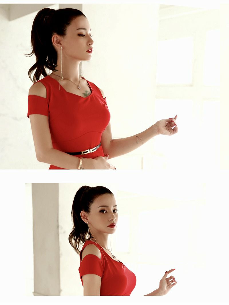6. 【訳ありアウトレット】セクシー膝丈タイト韓国キャバワンピース【DAYS PIECE】(S/M/L/XL)(ブラック/レッド)