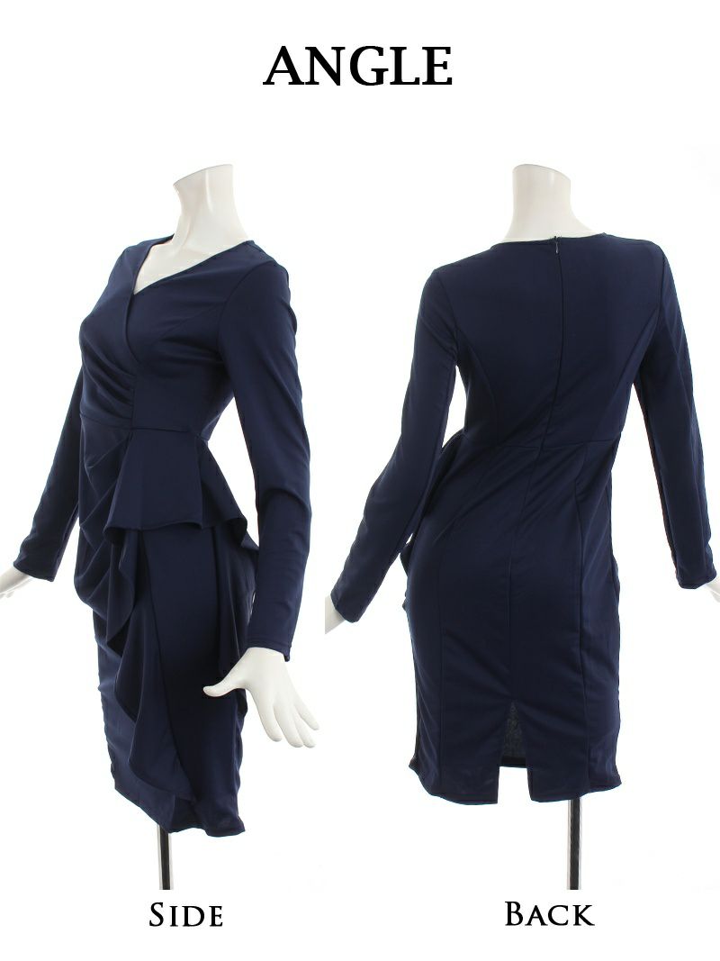 5. 長袖ドレープデザイン体型カバーキャバドレス りおん 着用 ミニドレス【RyuyuChick】(S/M/L/XL/XXL)(ブラック/ワイン/ネイビー)