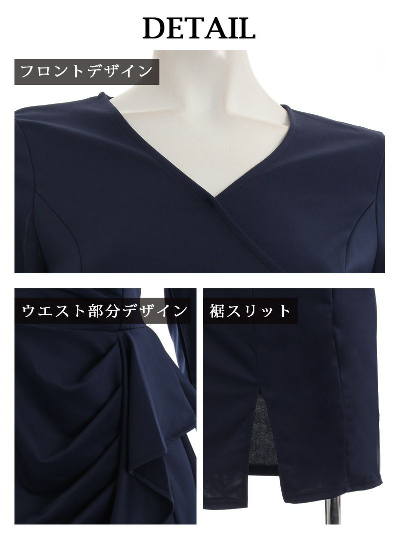7. 長袖ドレープデザイン体型カバーキャバドレス りおん 着用 ミニドレス【RyuyuChick】(S/M/L/XL/XXL)(ブラック/ワイン/ネイビー)