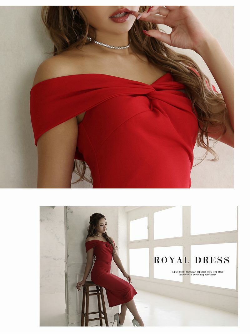 4. スーパーSALE¥4380→¥4332! 膝丈デザイン大人シルエオフショルダーキャバドレス りおん 着用 ミニドレス【RyuyuChick】(S/M/L)(ブラック/レッド)