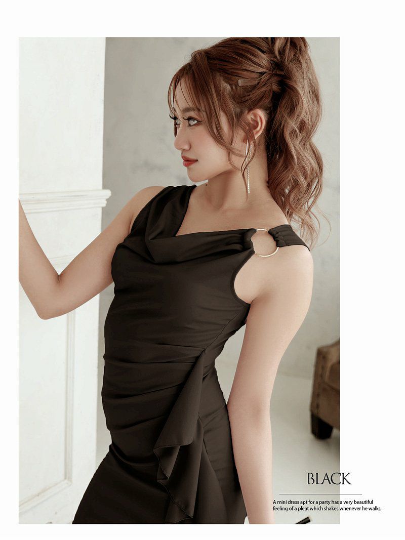 4. 【訳ありアウトレット】アシンメトリーストレッチミニドレス【RyuyuChick】(S/M/L/XL)(ブラック/ワイン/ネイビー/グレー/ロイヤルブルー)