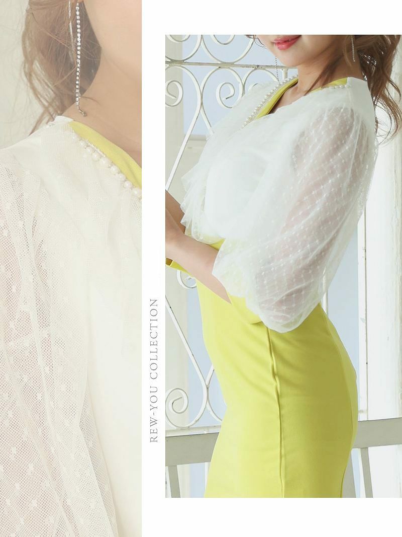 5. 【訳ありアウトレット】かわいい五分袖付レースキャバ嬢ミニドレス【RyuyuChick】(S/M/L)(イエロー)