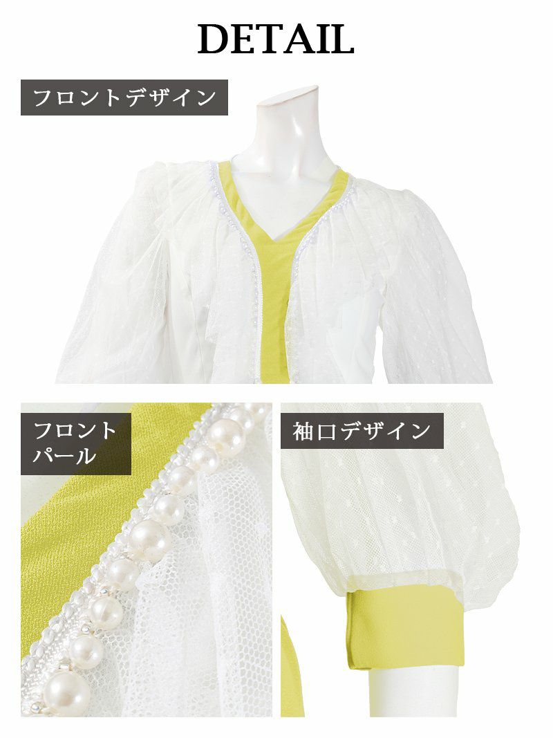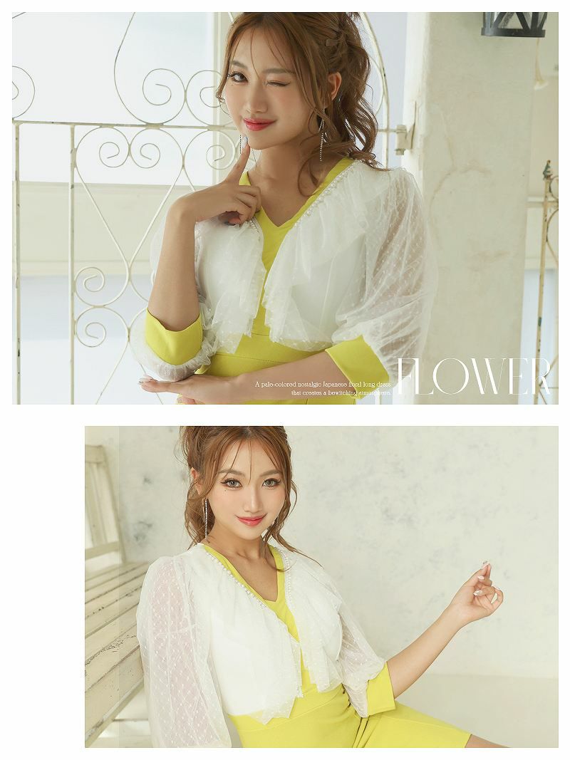ビタミンカラーが明るく、可愛らしさを引き立てるキャバドレス。レースのディテールで華やかさもプラス。