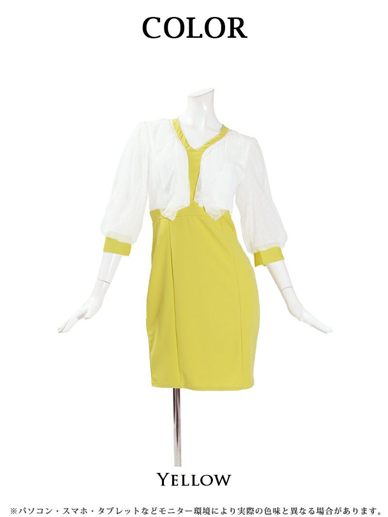 4. 【訳ありアウトレット】かわいい五分袖付レースキャバ嬢ミニドレス【RyuyuChick】(S/M/L)(イエロー)