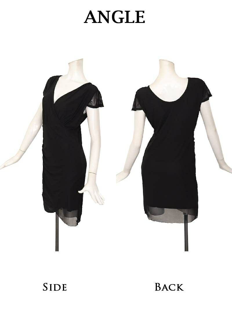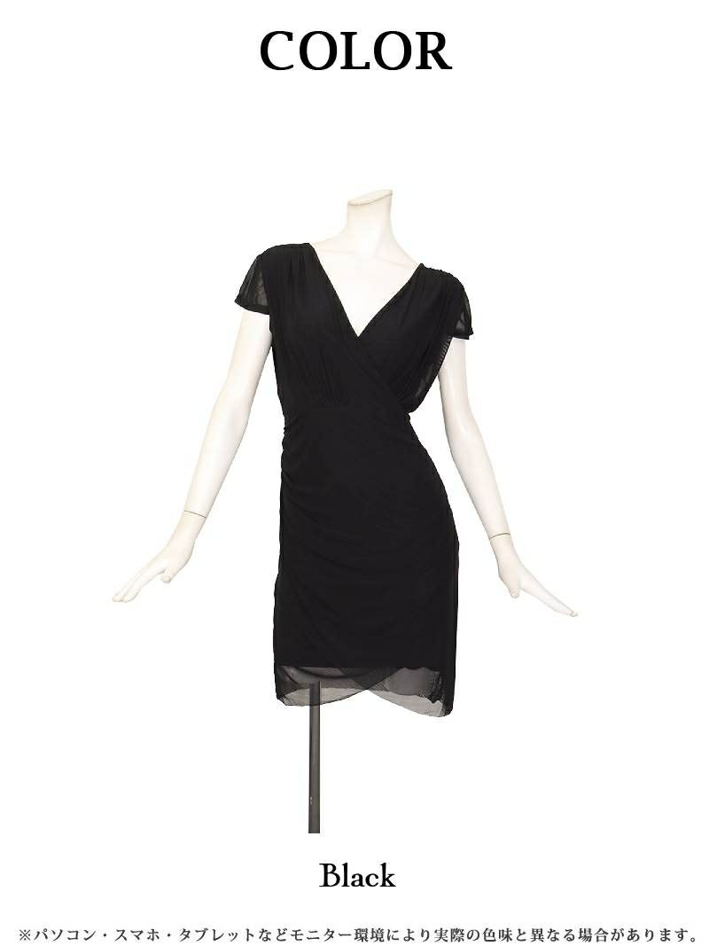 5. カシュクールメッシュスリーブタイトミニドレス りおん 着用 キャバドレス【RyuyuChick】(M/L)(ブラック)