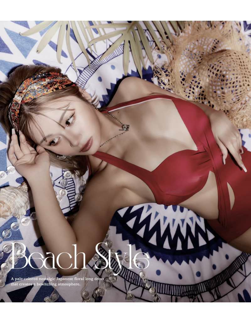 シンプルな単色モノキニは後ろから見たらシンプルなビキニデザインだからモノキニ初心者さんにもおすすめなワンピース水着♪