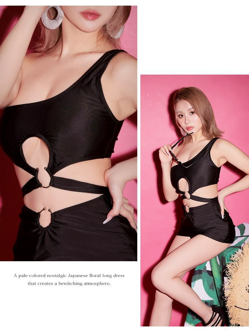ワンピース風スカートモノキニワンショルダー水着レディースビキニ【Ryuyu】