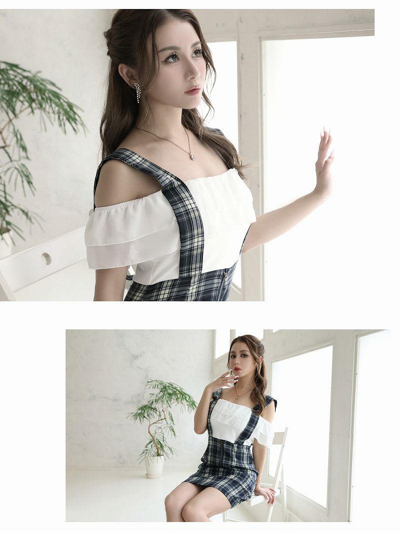 チェック柄でシンプルな中に可愛さをプラスしたミニ丈キャバワンピース。