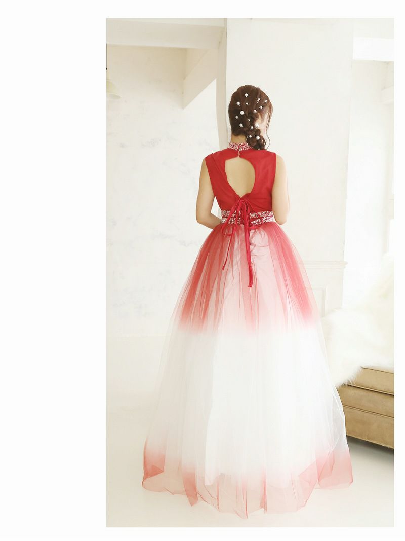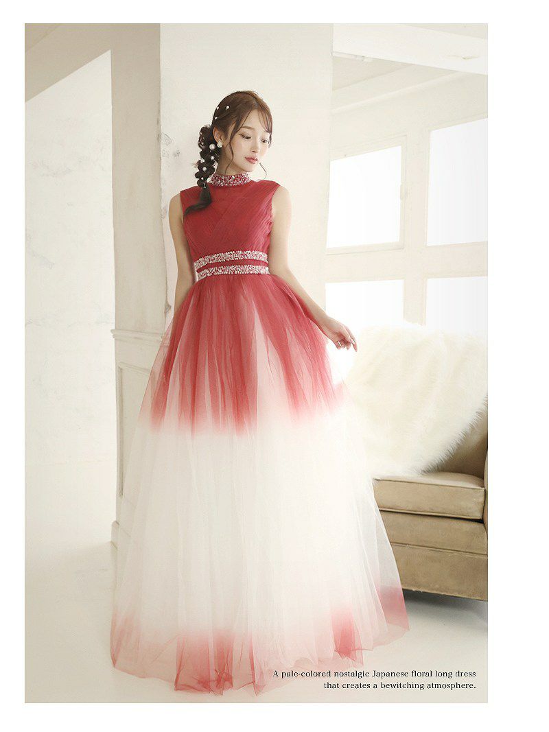 バースデーイベントや結婚式にも ハイネックレッドグラデーションロングドレス【Ryuyu】(S/M/L)(レッド)