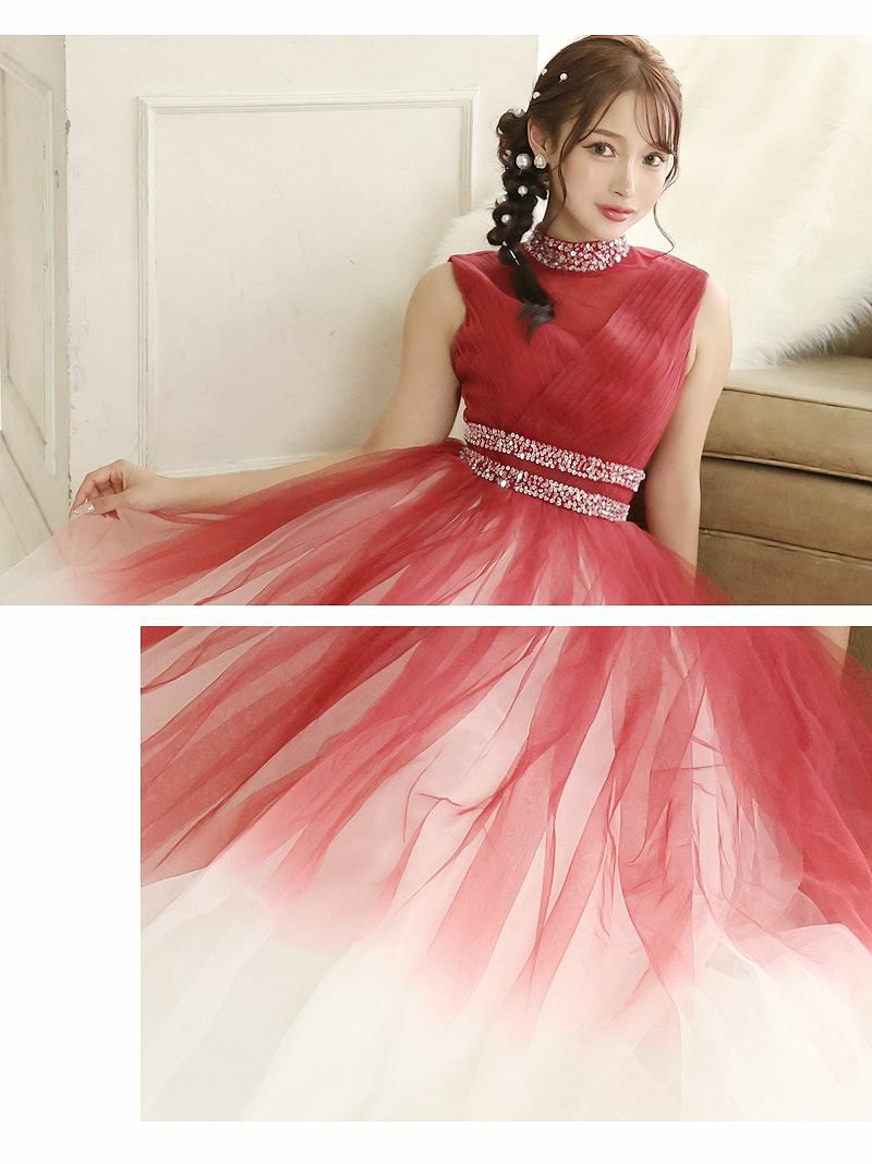 レッドカラーのグラデーションが美しい!ふんわりとした空気感のプリンセスラインが抜群の存在感を放つ主役級キャバクラドレス。