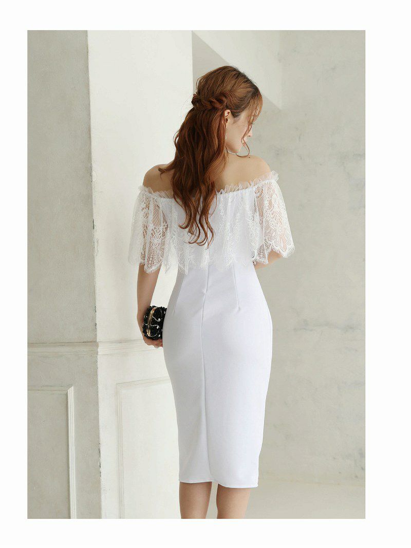 5. スーパーSALE¥6980→¥5333! ボリュームレースオフショル膝丈ミニドレス キャバドレス【Ryuyu】(M/L)(ブラック/ホワイト)