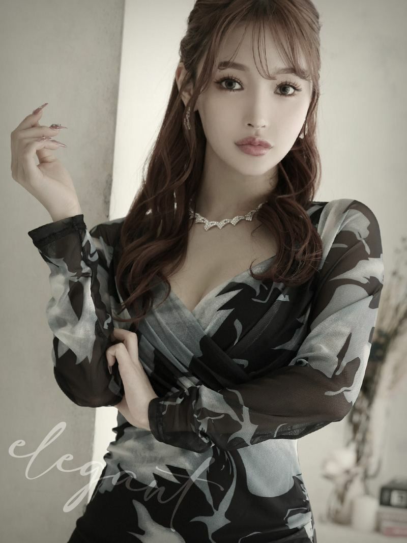 ※一部予約販売※シアー長袖プリント柄タイトミニドレス【Ryuyu】