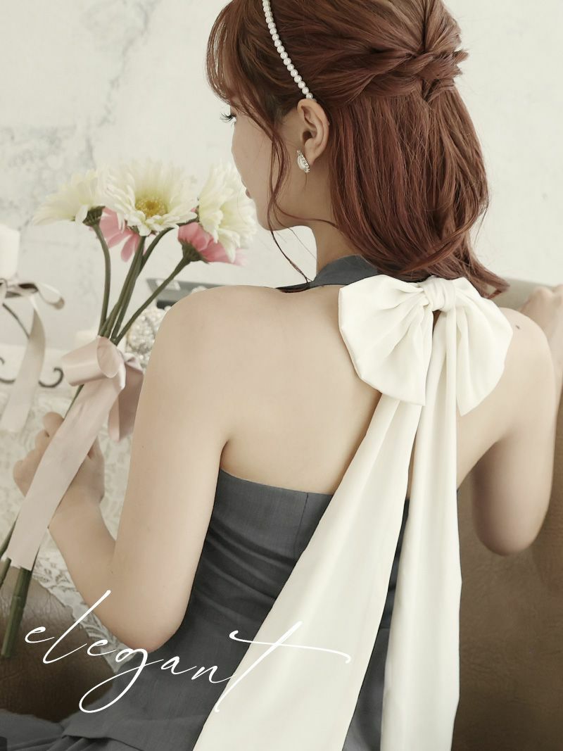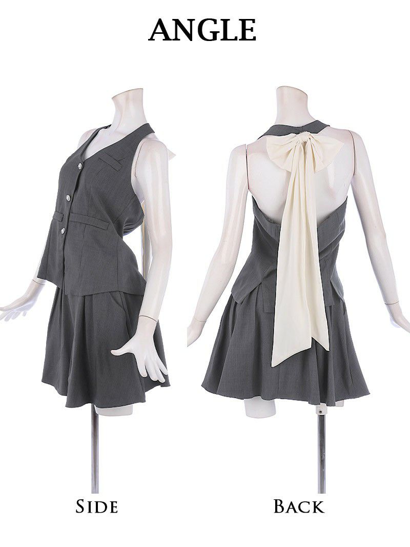 バックリボンホルダーベストセットアップドレス キャバドレス【Ryuyu】