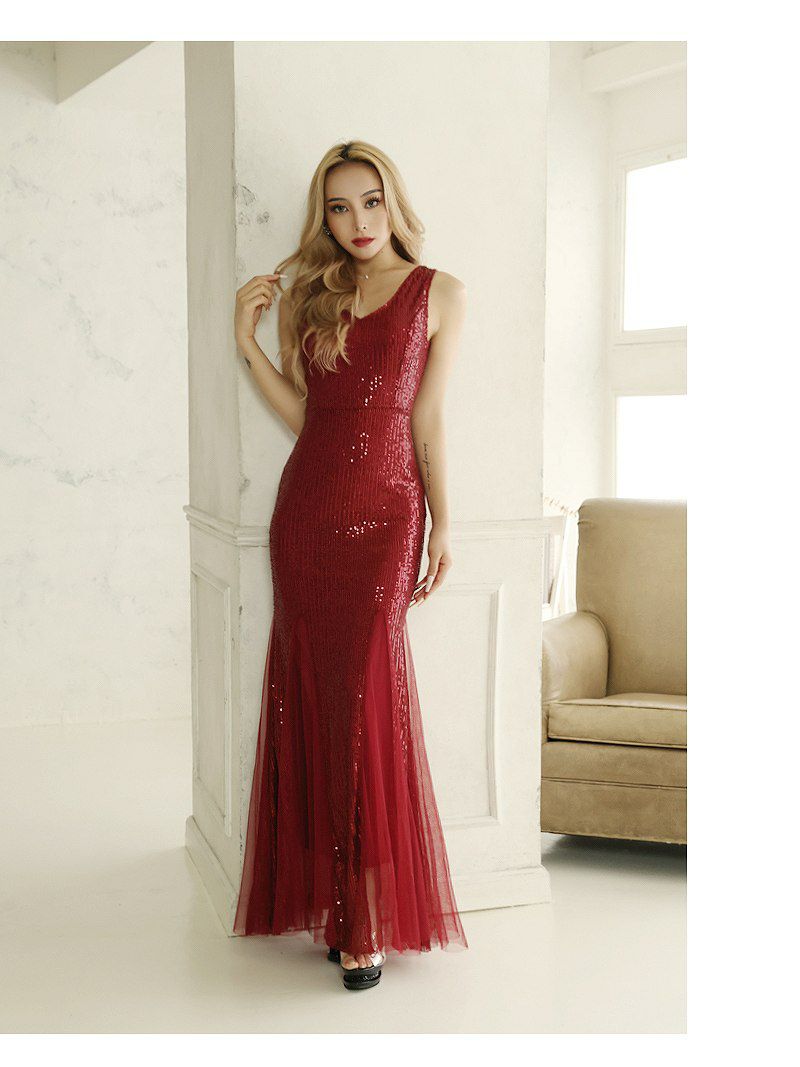 6. マーメイドライン総スパンコールロングドレス【Ryuyu】(M/L)(ワイン/ネイビー/ピンクゴールド)