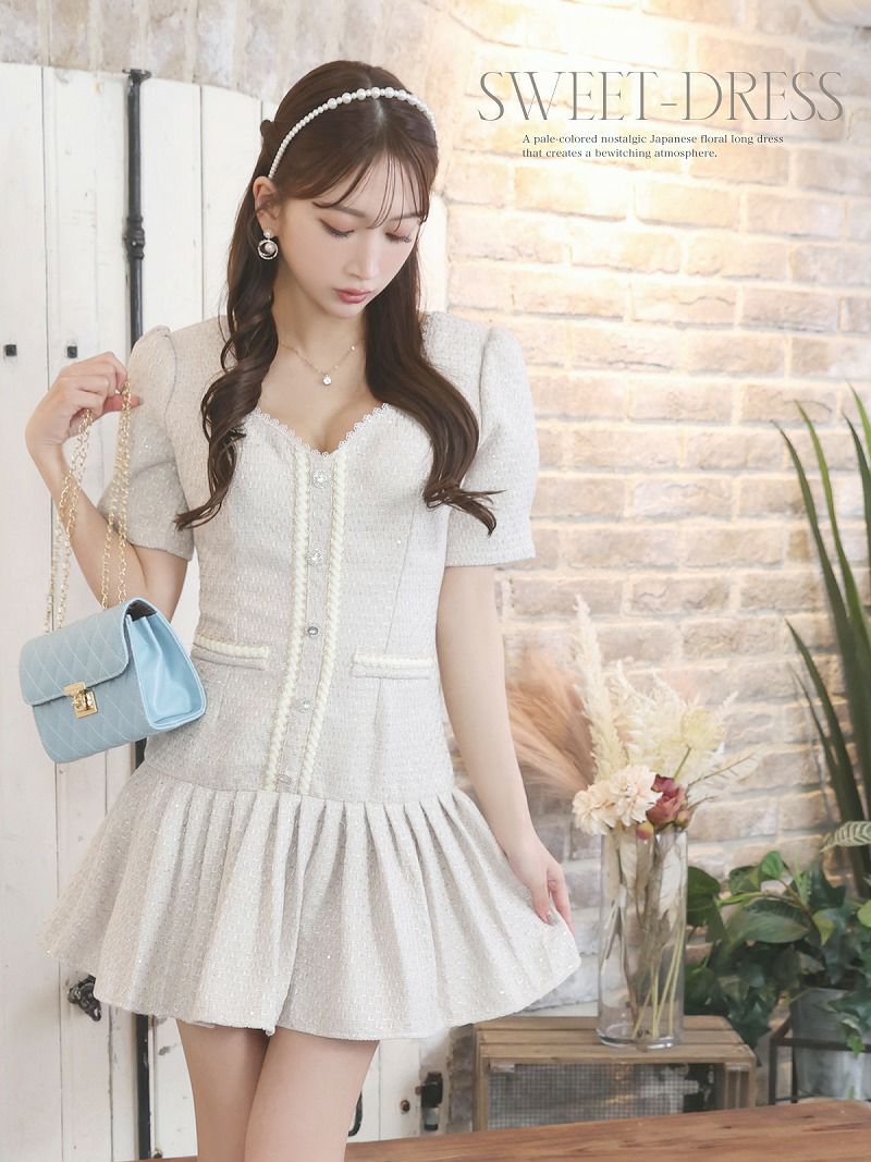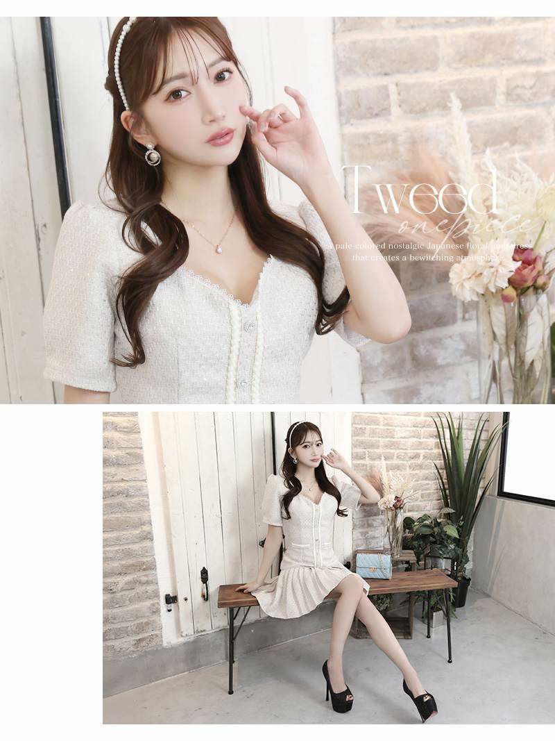 フリル袖が可愛いAラインシルエットのミニ丈キャバワンピース。