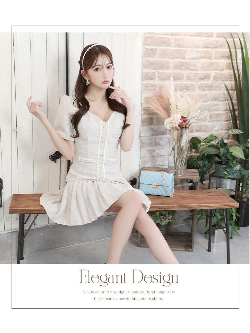 loveryプリーツのキュンかわワンピ♪ スーパーSALE¥7680→¥3840! Aラインフリル袖付きキャバ可愛いミニ丈キャバワンピース【Ryuyu】(S/M/L)(ネイビー/ベージュ)