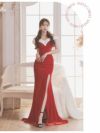 サンタコスプレ オフショルセクシースリットサンタコスプレロングドレス【Ryuyu】