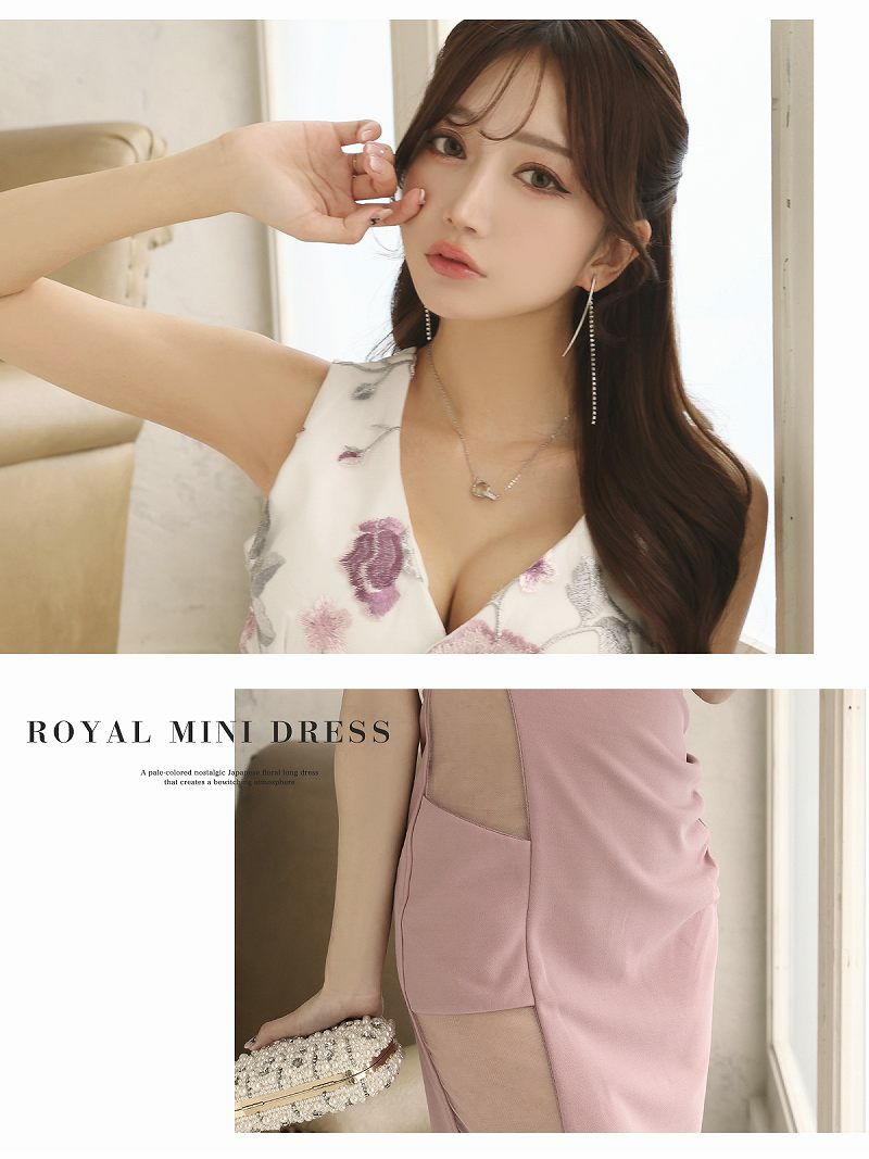 バイカラー谷間魅せ花柄刺繍ミニキャバドレス【RyuyuChick】