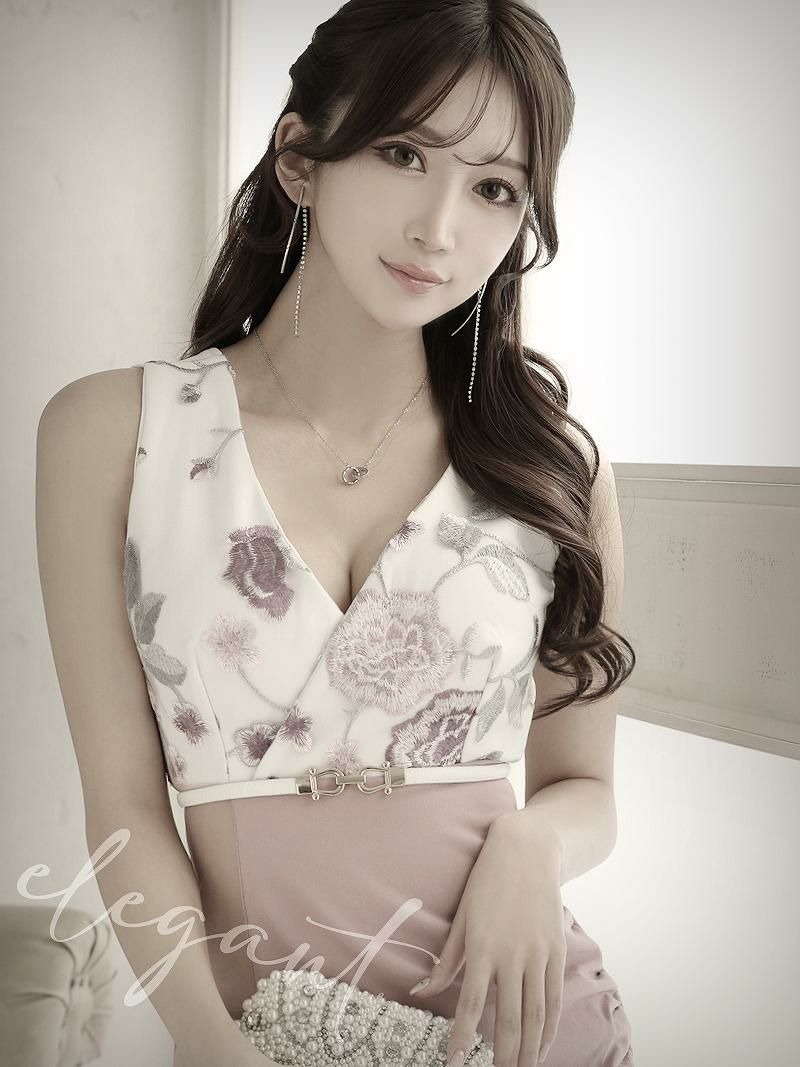 サイドシアー花柄刺繍タイトミニキャバドレス【RyuyuChick】