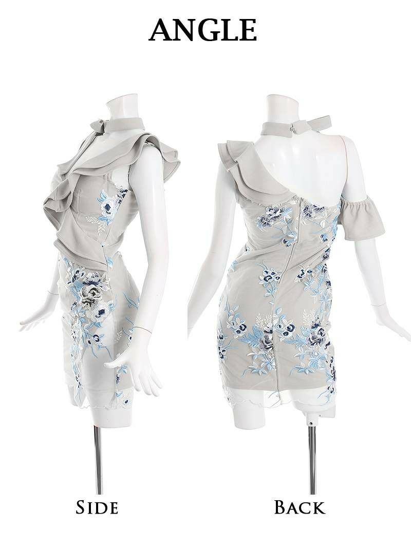 ワンショルダーフラワー刺繍タイトキャバドレス【Ryuyu】