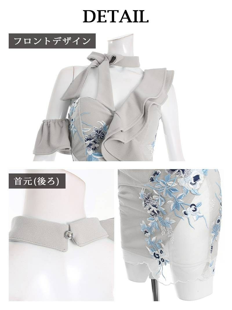 5. スーパーSALE¥6290→¥3333! ワンショルダーフラワー刺繍タイトキャバドレス【Ryuyu】(S/M/L)(グレー/ピンク)