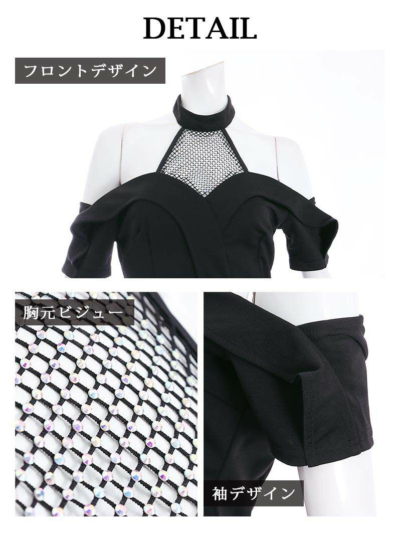 4. オープンショルダーオーロラビジューホルターネックキャバドレス【RyuyuChick】(S/M/L)(ブラック)